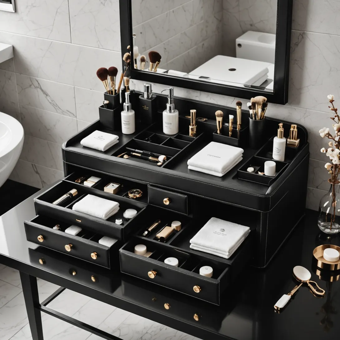 Особое внимание заслуживает органайзер черный — классика, которая никогда не выходит из моды. Этот цвет символизирует строгость, элегантность и универсальность, прекрасно вписываясь в любой интерьер и стиль. Черный органайзер из кожи способен стать не просто функциональным предметом, а настоящим украшением вашего туалетного столика или ванной комнаты.